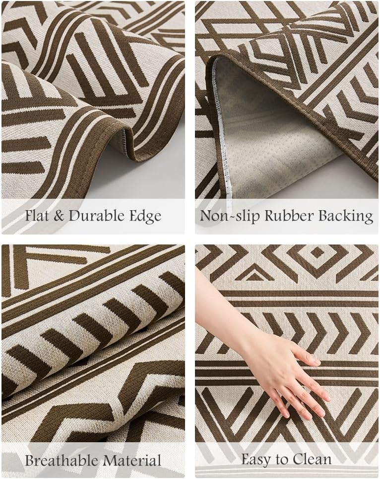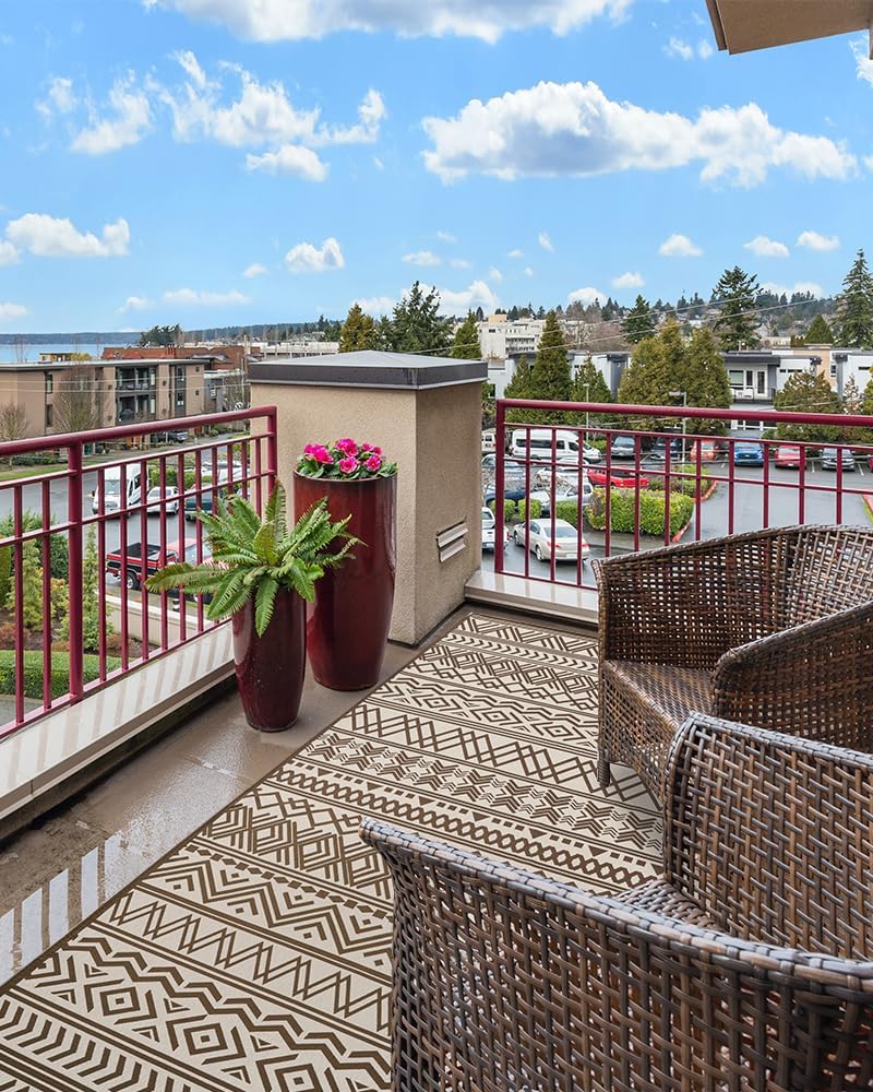 Outdoor Rug Carpet 9×12 ft, Flatweave Textured Outdoor Patio Rug Non Slip Indoor Outdoor Rugs with Rubber Particles Backing Boho Outdoor Area Rug for Patio Deck Front Porch Backyard Balcony, Brown