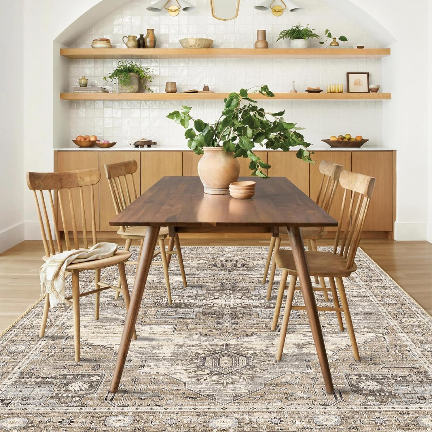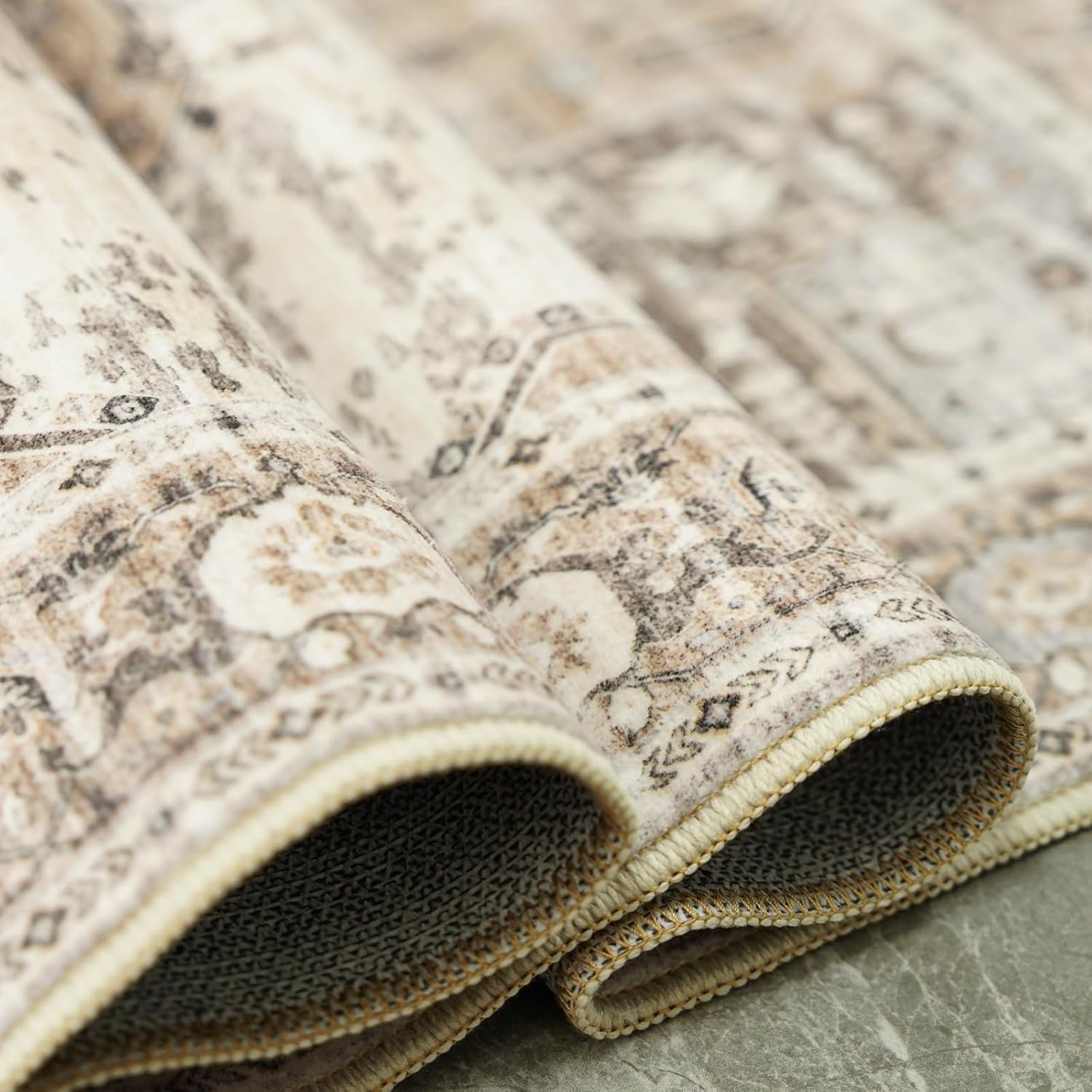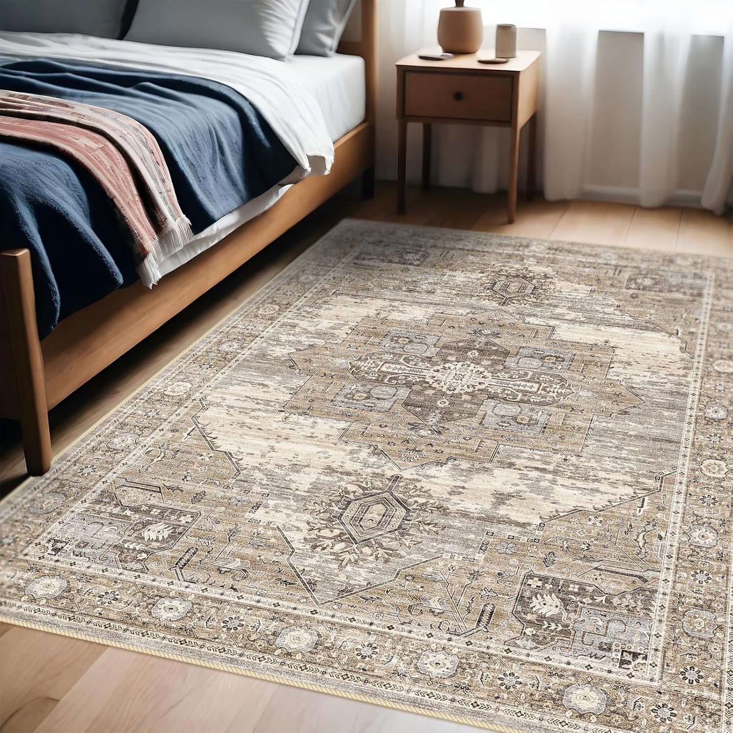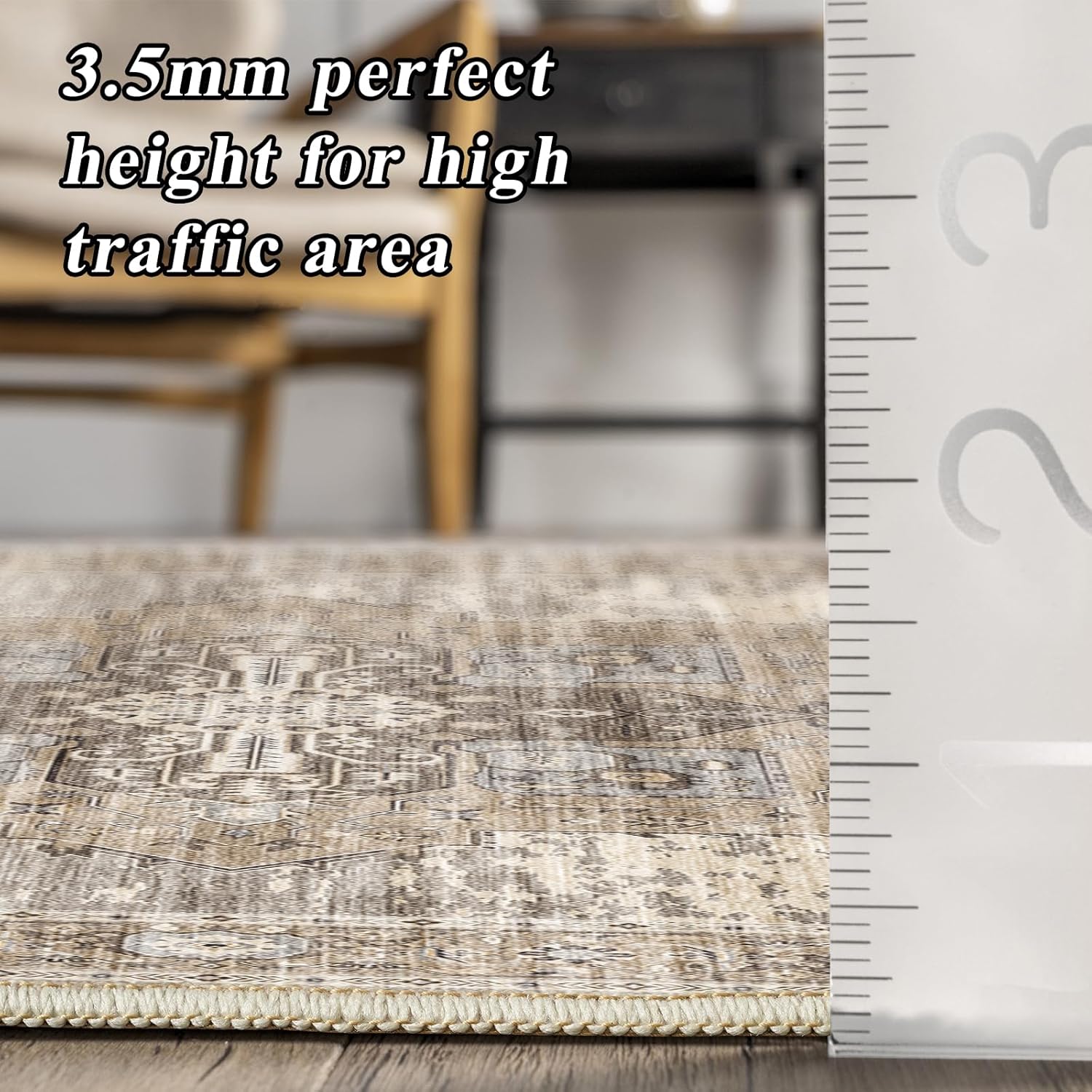 Washable 4×6 Area Rugs – Living Room Area Rug Stain Resistant Carpet Vintage Lightweight Ultra-Thin Rugs for Bedroom Kitchen entryway with Non Slip Backing Home Decor Small Mat 4X6 Beige